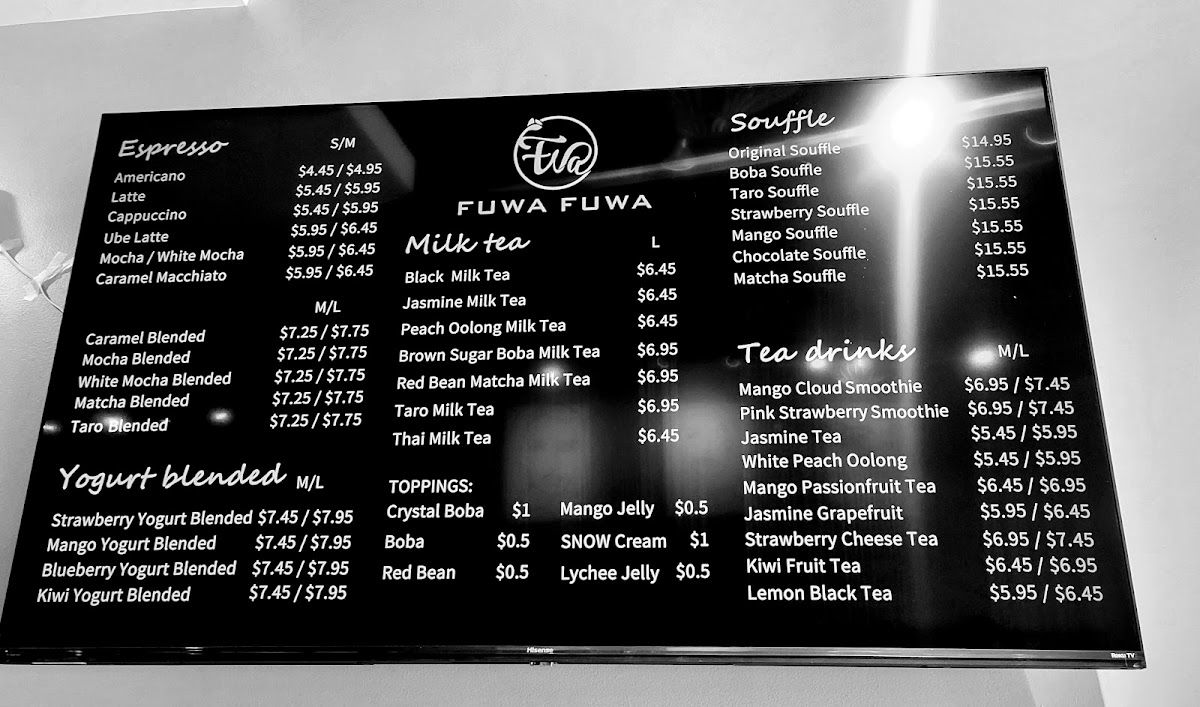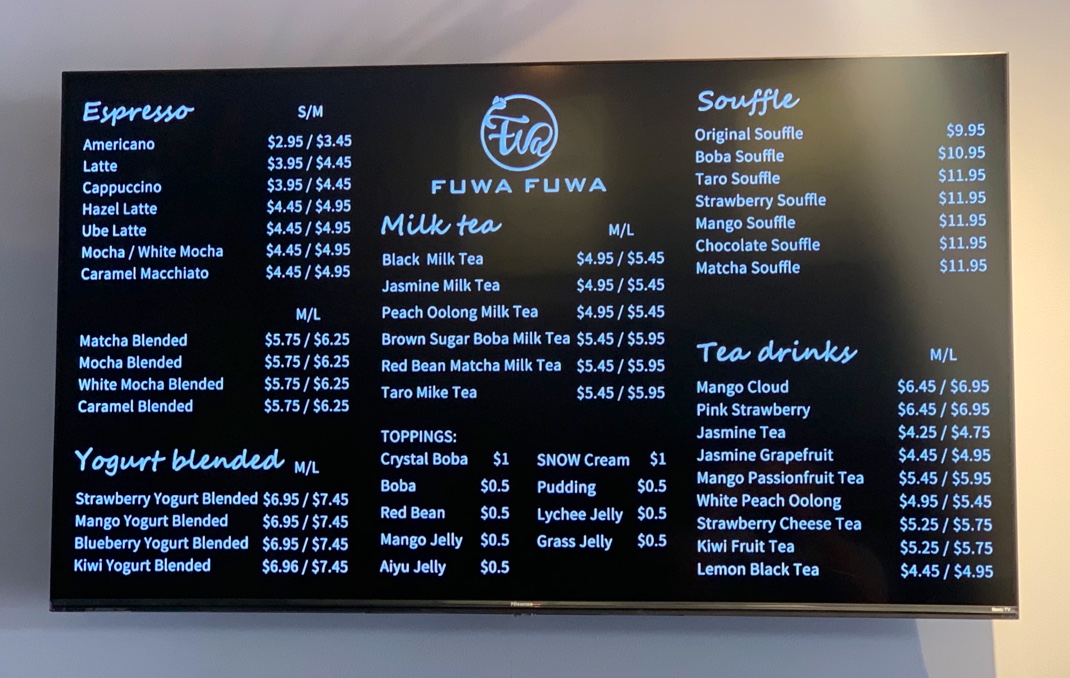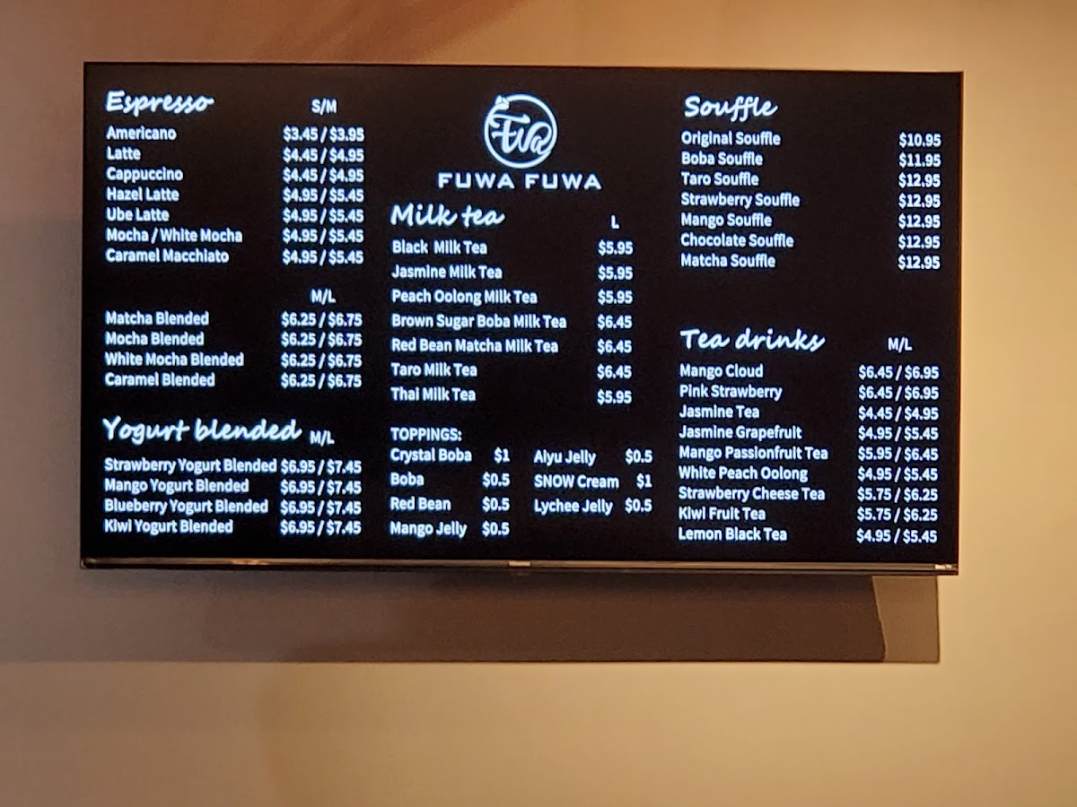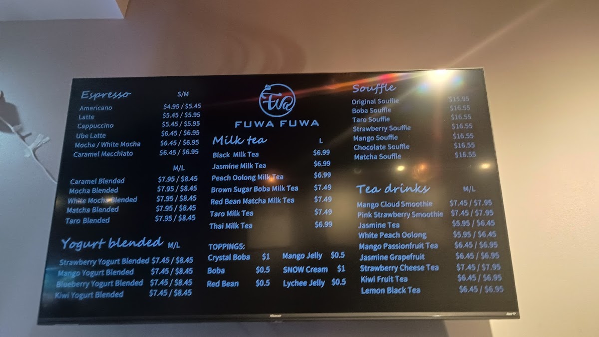The menu at FUWA FUWA Soufflé Cafe offers a variety of items organized across several categories, catering to those seeking light meals, desserts, and beverages primarily suitable for breakfast, coffee breaks, or casual snack times.